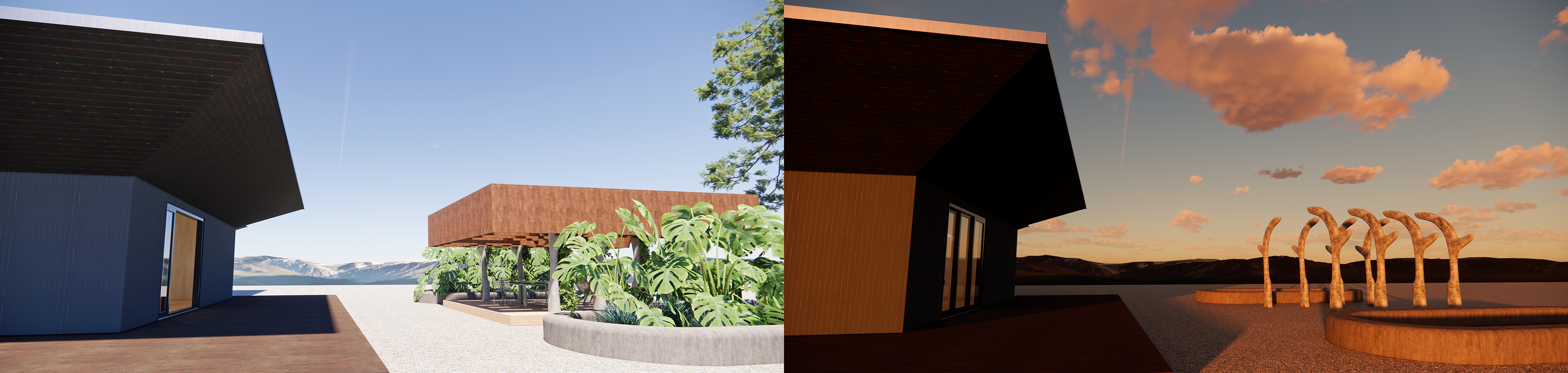 And if wildfire takes the shade structure, the pavilion’s concrete inner structure will be revealed. To remind us that we are building on a changing, powerful planet.