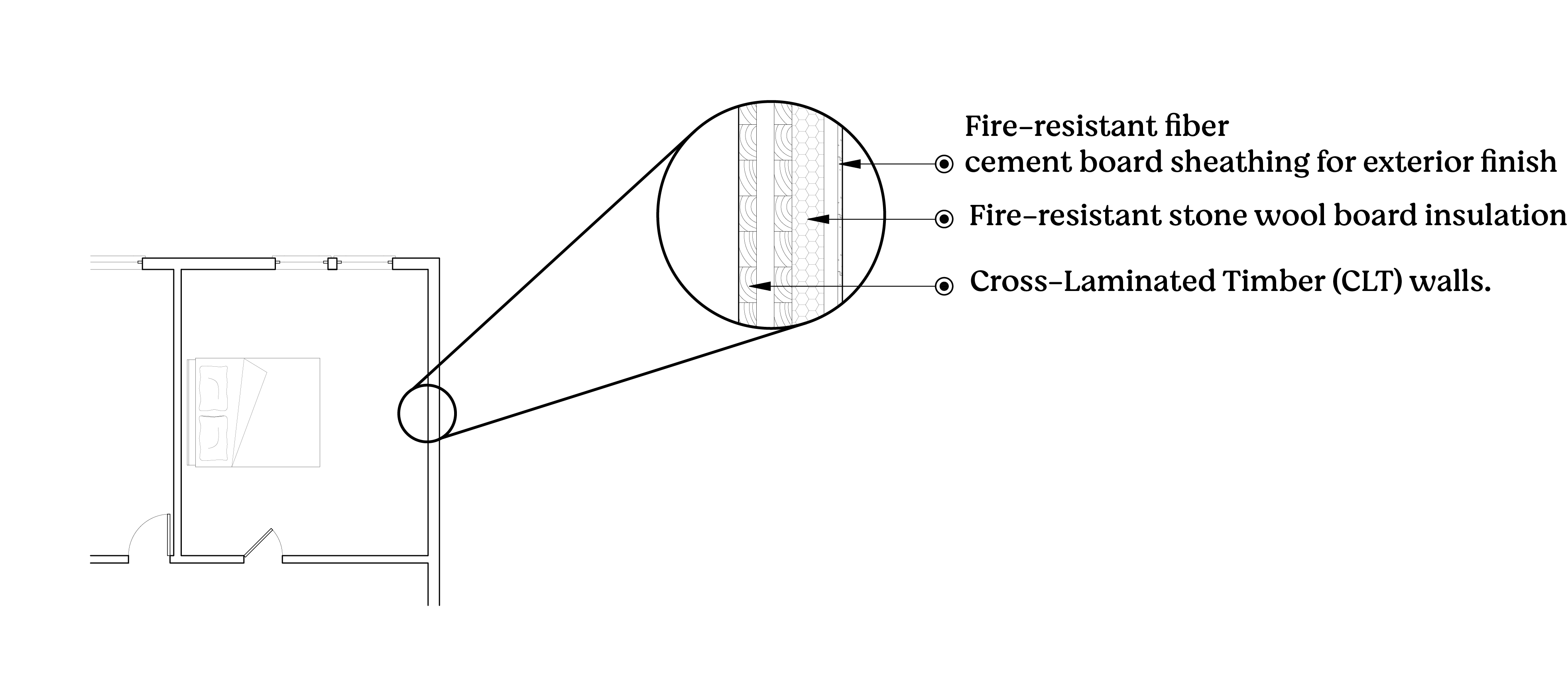 Extreme Insulation: Adding a layer of fire resistant, high performance stone wool insulation outside of the structure of the walls and roof, help protect from extreme temperatures and the insulation and structure itself being lit by an ember.